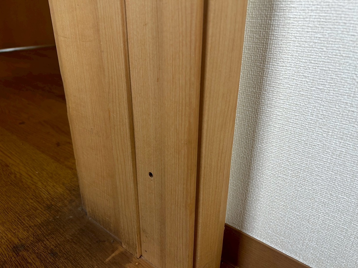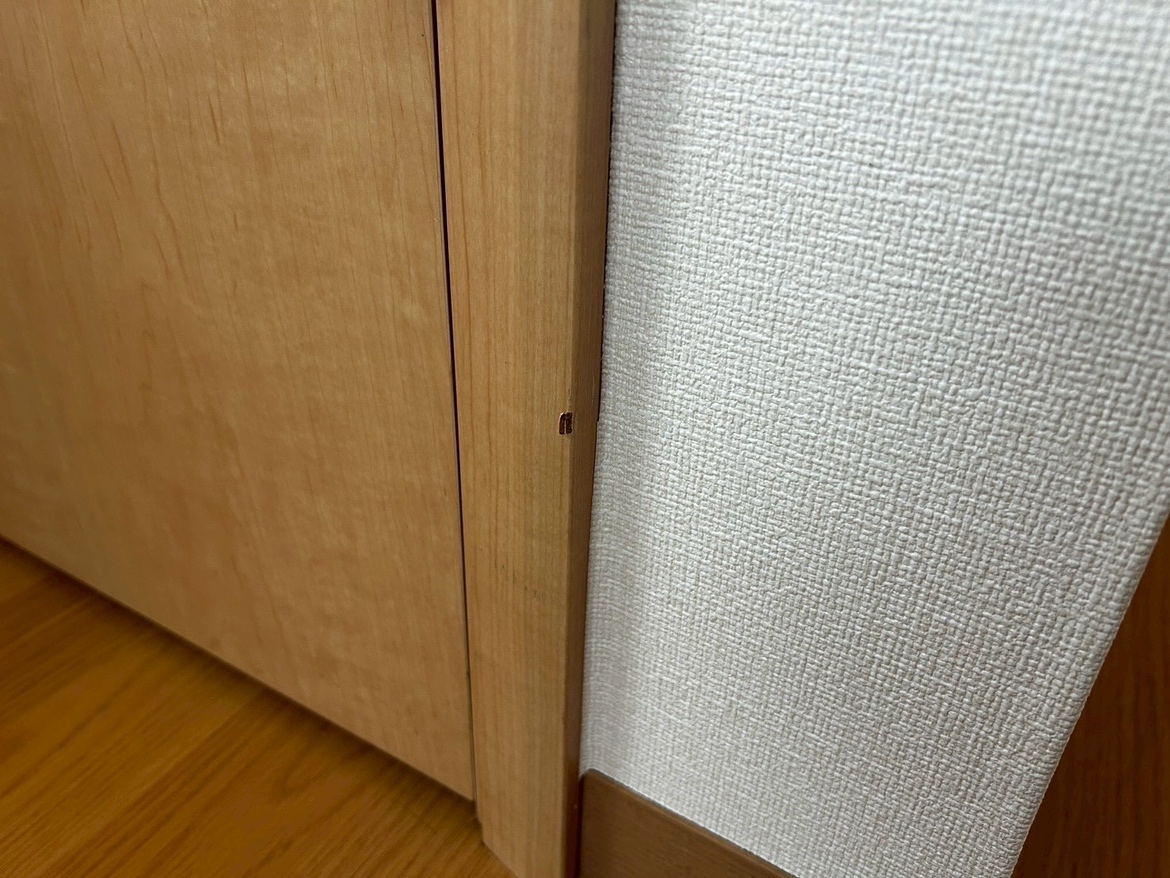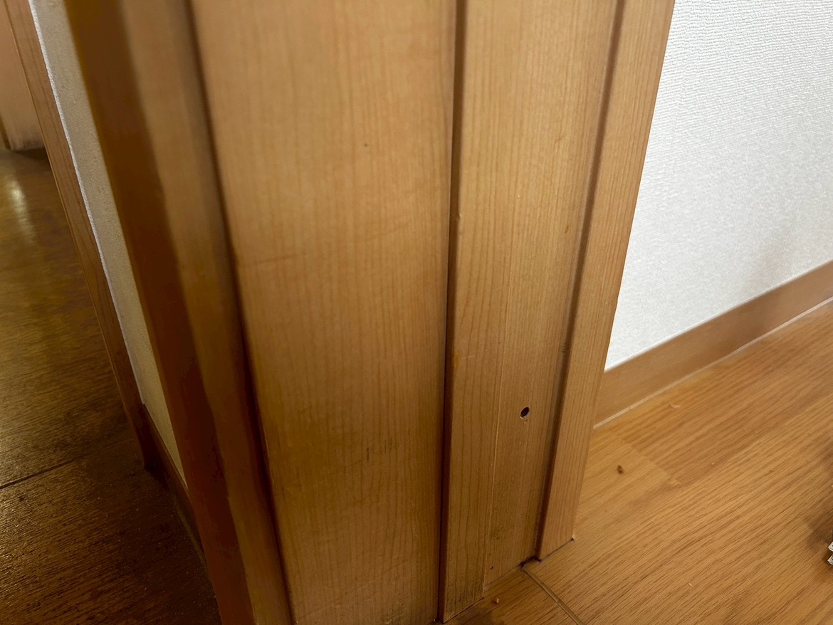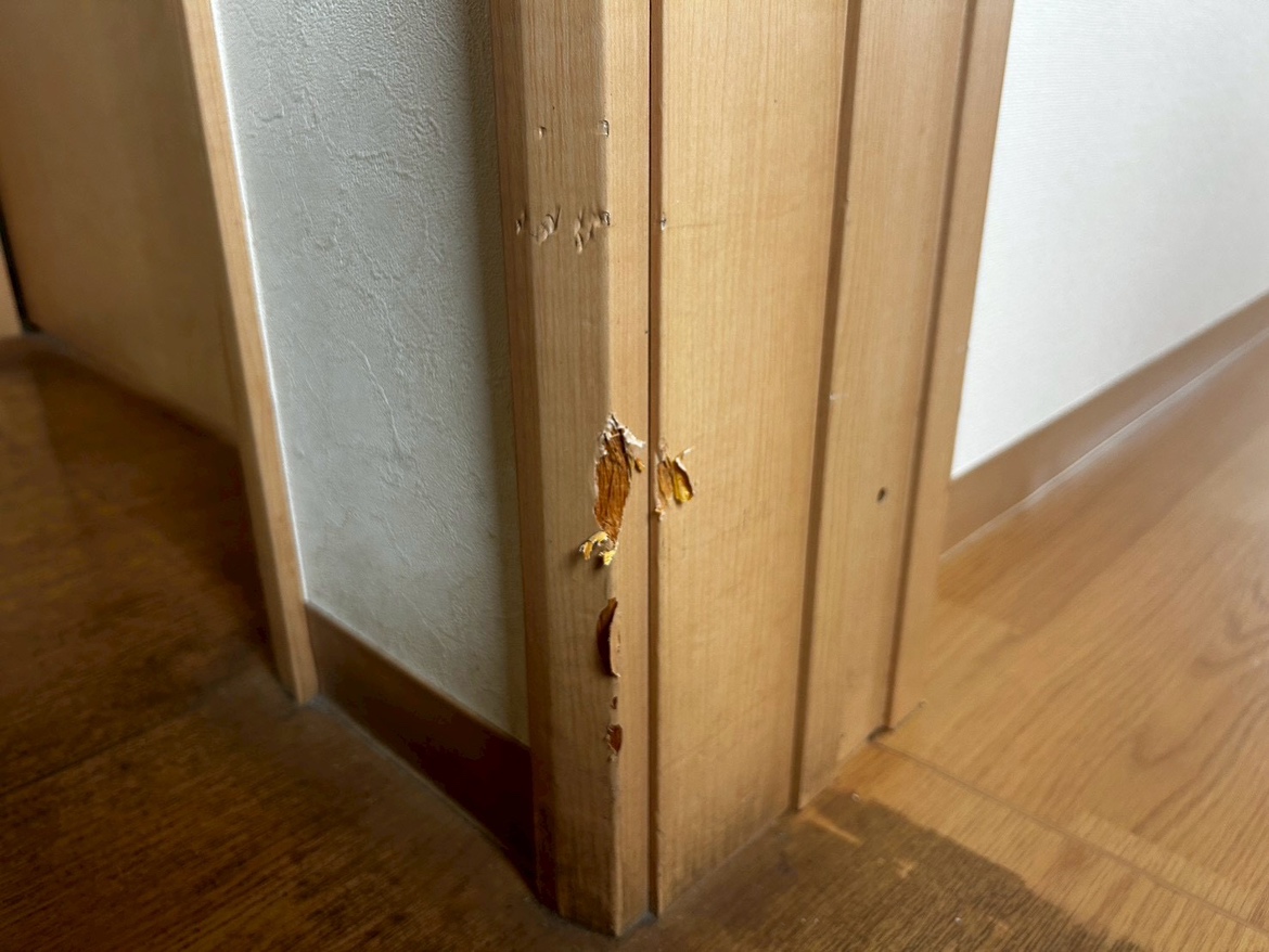 車いすで生活をしている入居者様が多いと言う事でした。今回の傷も車いすでぶつけてしまったような傷でかなり目立っていましたが、リペア後は気になる事のない空間に仕上がりました。