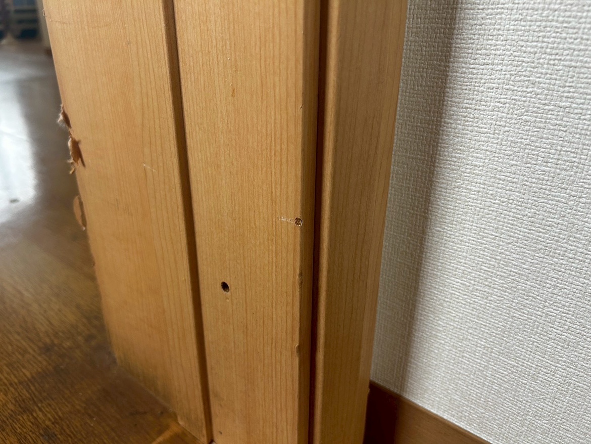 削れてはいませんでしたが、段差が出来てしまっていました。傷を整えた後、木目を書く事でより自然な仕上がりにする事が出来ます。