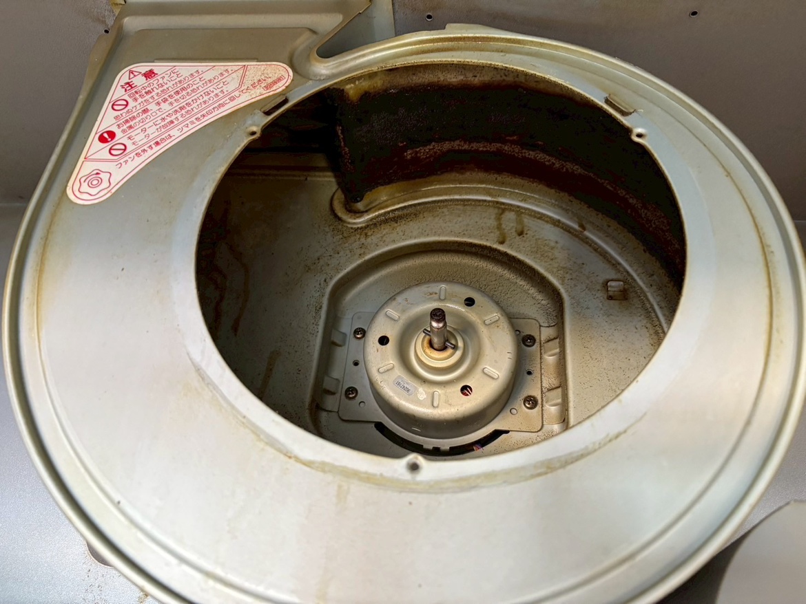 油汚れでひどく汚れていたので、強力な薬剤を使って付け置きしながら汚れを落としていきました。 レンジフードの汚れを放置してしまうと、ファンに油が付着して動きが悪くなったり、換気不良などによる健康被害にも繋がりかねません。