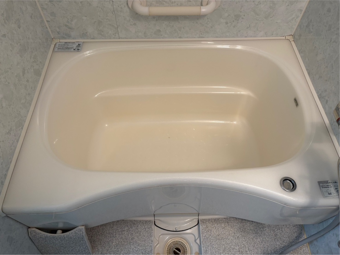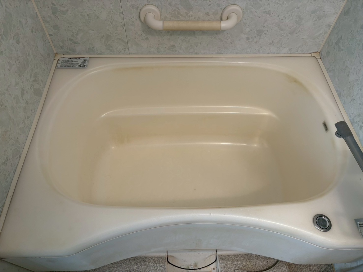 浴室内には湿気が溜まりやすく、カビや水垢、石鹸カスが溜まりやすいです。 浴槽には皮脂などによる汚れが目立ちました。 酸性と塩素系の洗剤を汚れによって使い分けながら作業をしていきますが、二つの洗剤が混ざってしまうと有毒ガスが発生する恐れがあるので、密室にならないように喚起に気を付けながら、綺麗に仕上げました。