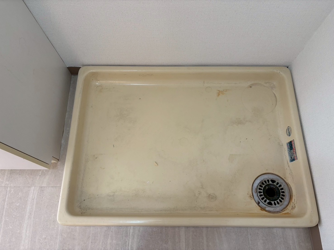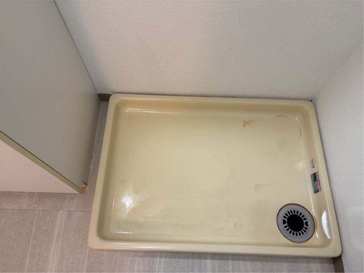 洗濯パンは普段から清掃する機会が少ない箇所になる為、汚れが溜まっていることが多いです。 埃などを取ってから綺麗に拭き上げました。