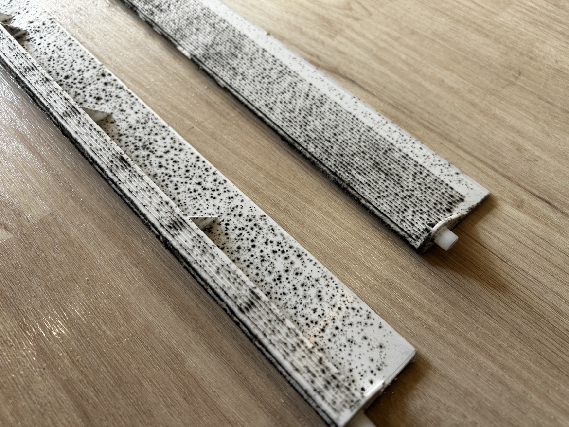カビが大量発生し、このまま使用していたら…と考えるとゾッとする方もいるかと思います。 担当した13部屋全室入居中だった為、養生をしっかりしてから作業に取り掛かりました。 薬剤をかけ、ブラシでこすって綺麗に流していきます。 パーツ全てを綺麗に仕上げた後、元のとおりに戻していきます。 清掃後は正常に運転するかのチェックもしっかり行います。