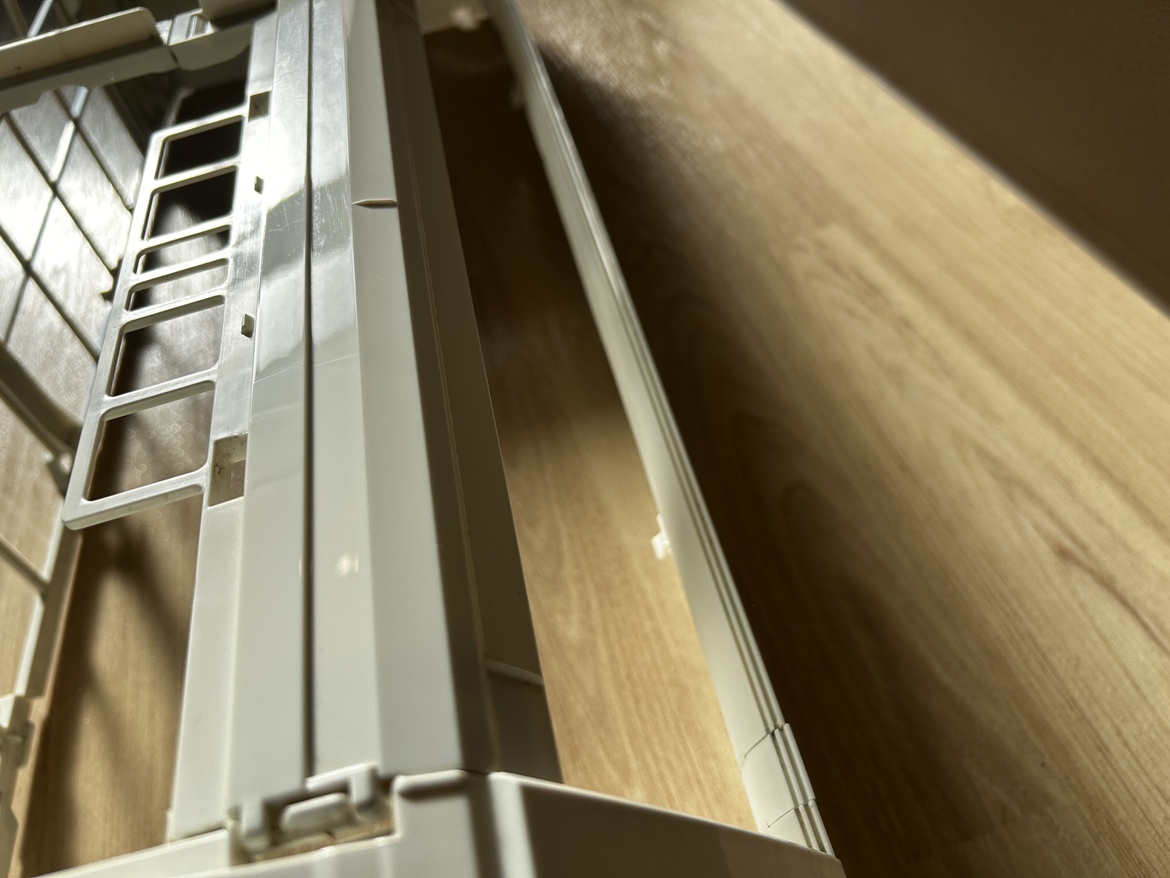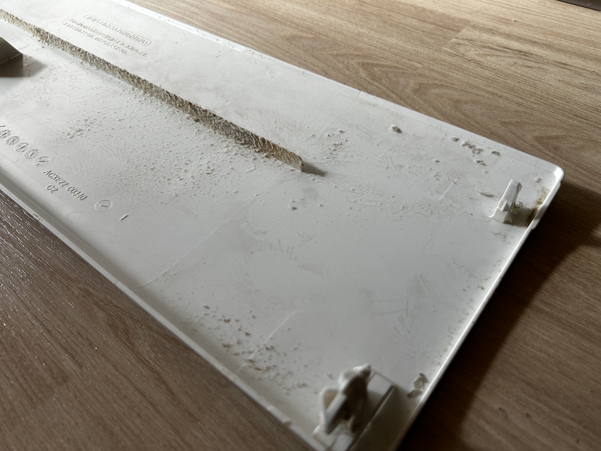 ご入居中の居室のエアコン清掃だったので、周囲にある私物や壁紙、床を汚さないように養生をしっかりしてから作業を進めました。