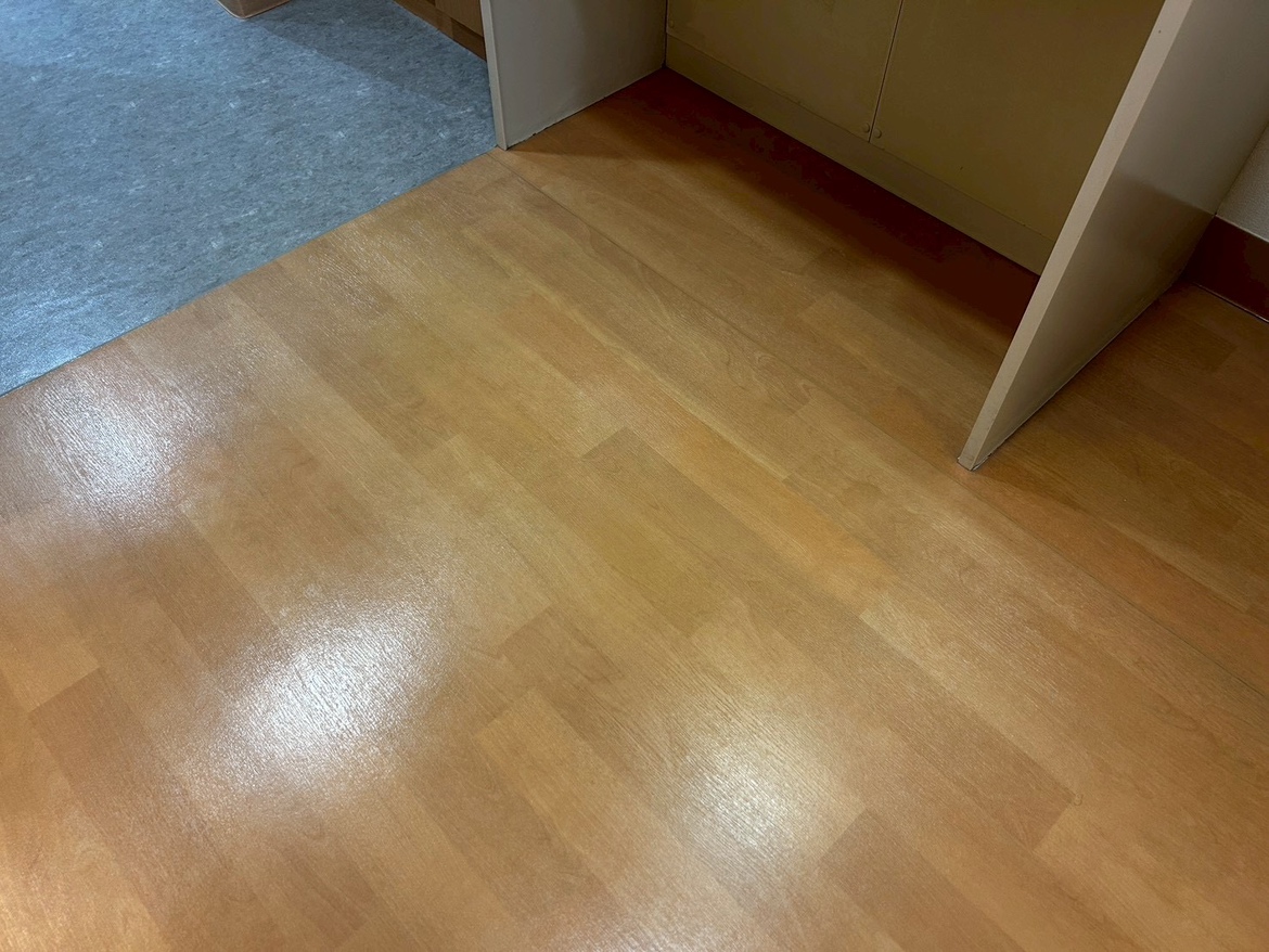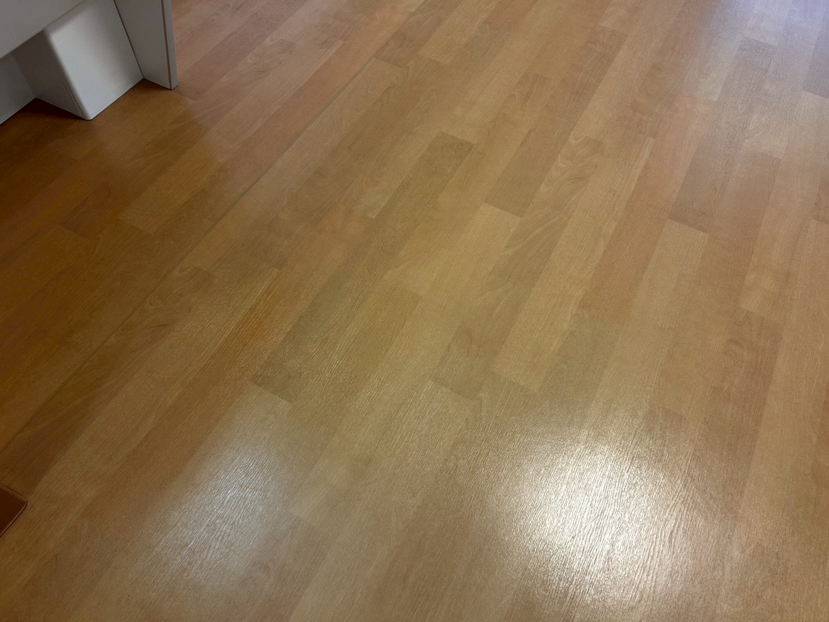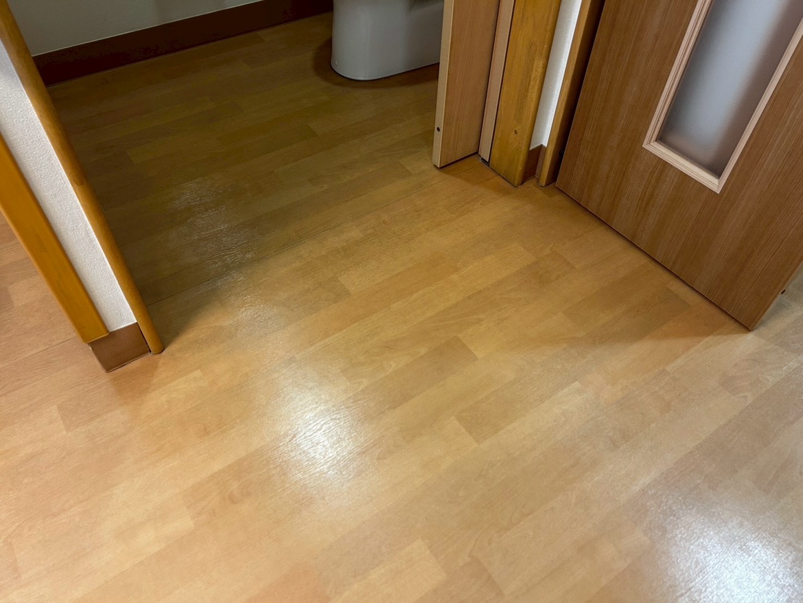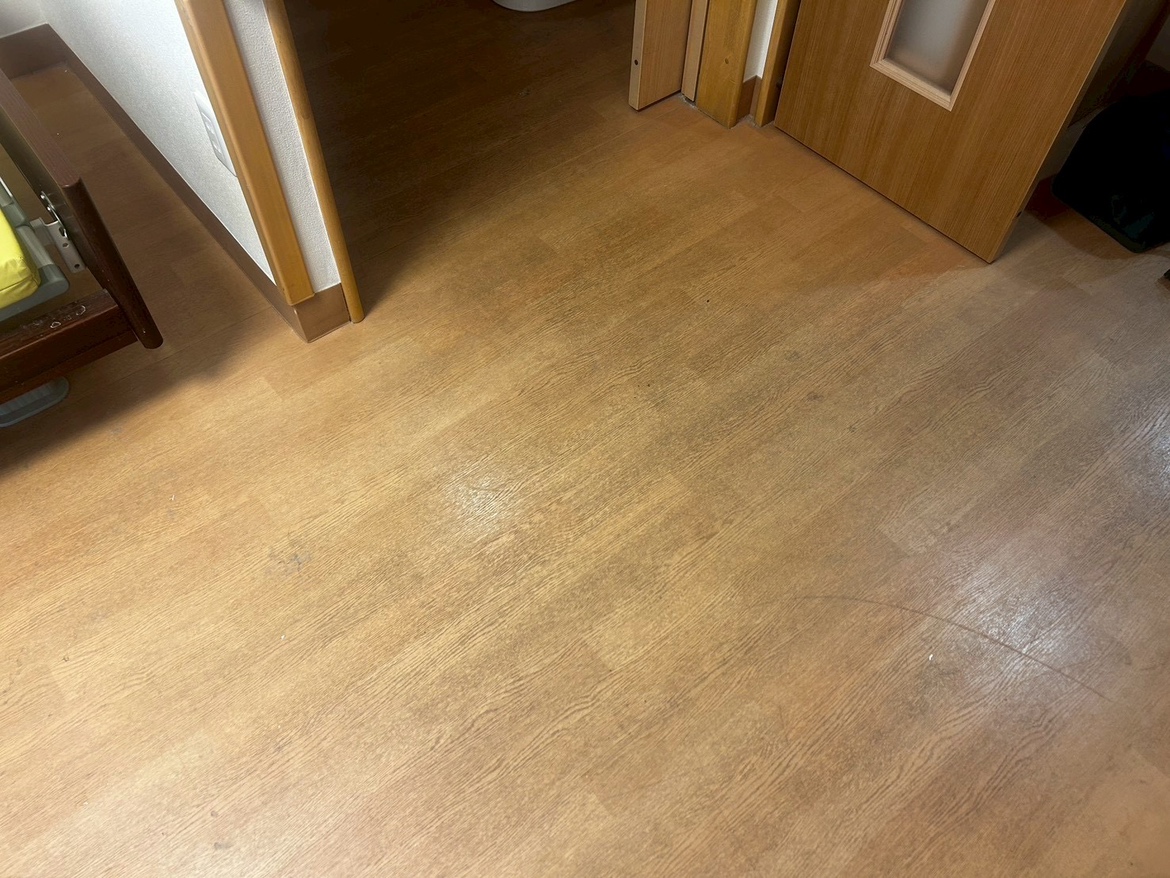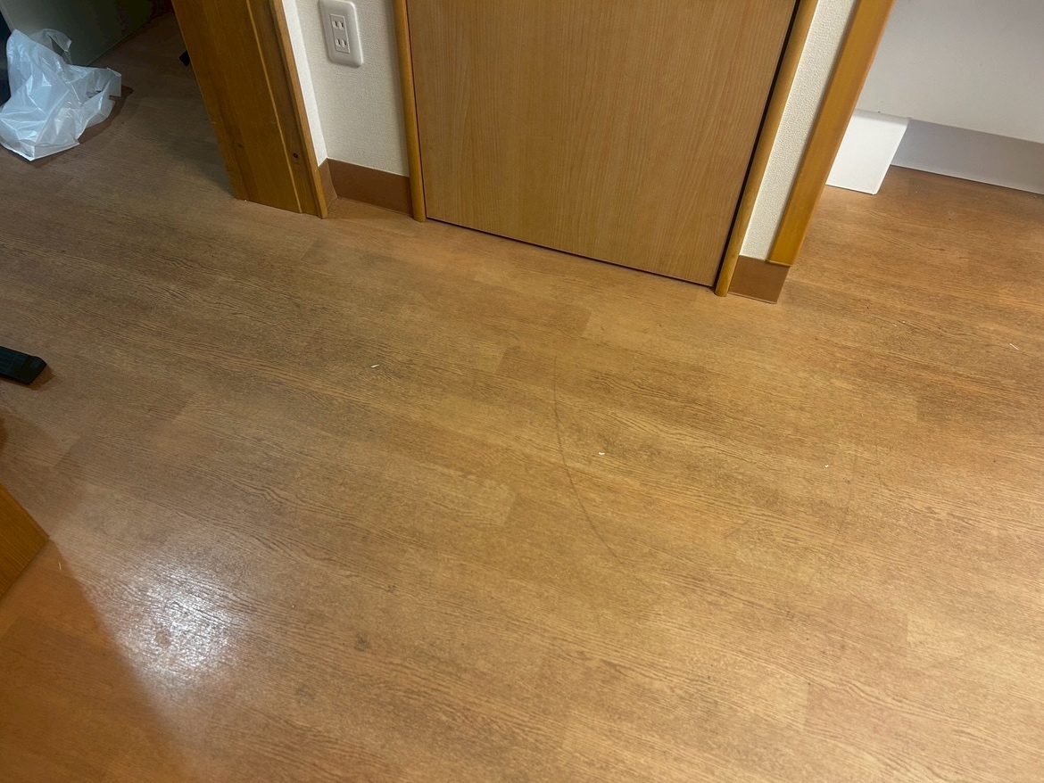 その中でも床の汚れが目立っていましたが、清掃前後では床が貼り替わったような変化が出ました。