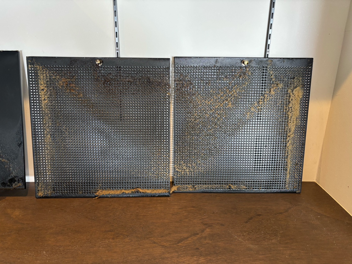 レンジフードは外せる部分は外して隅々まで汚れを落とします。 油汚れが多いと埃も付きやすくなります。こちらもアルカリ洗剤を使って汚れを落としました。