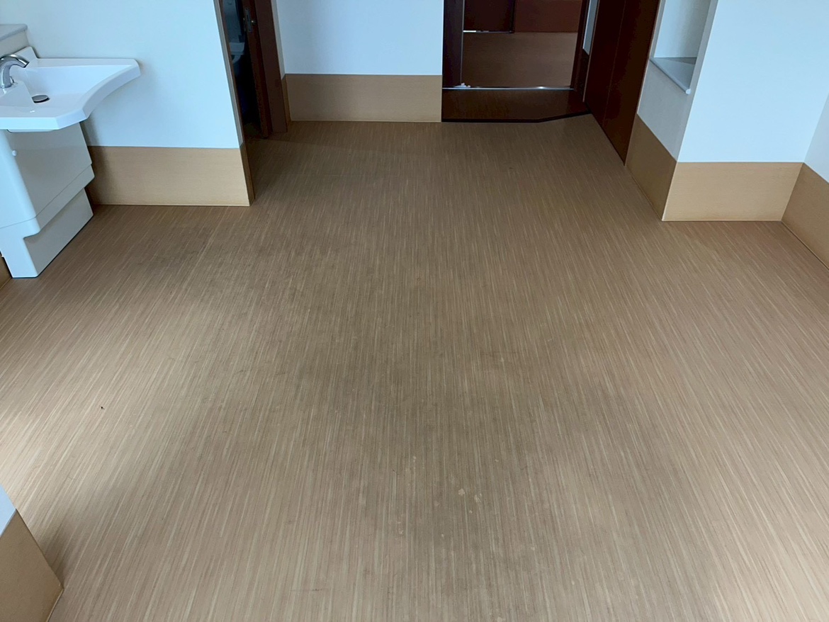 特に床の黒ずみが目立っていましたが、清掃後は清潔感のあるきれいな居室に生まれ変わりました。